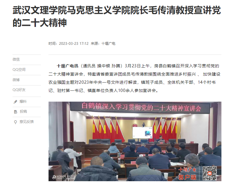 新闻链接:Beat365亚洲版官网入口院长毛传清教授宣讲党的二十大精神-十堰广电网 (syiptv.com)