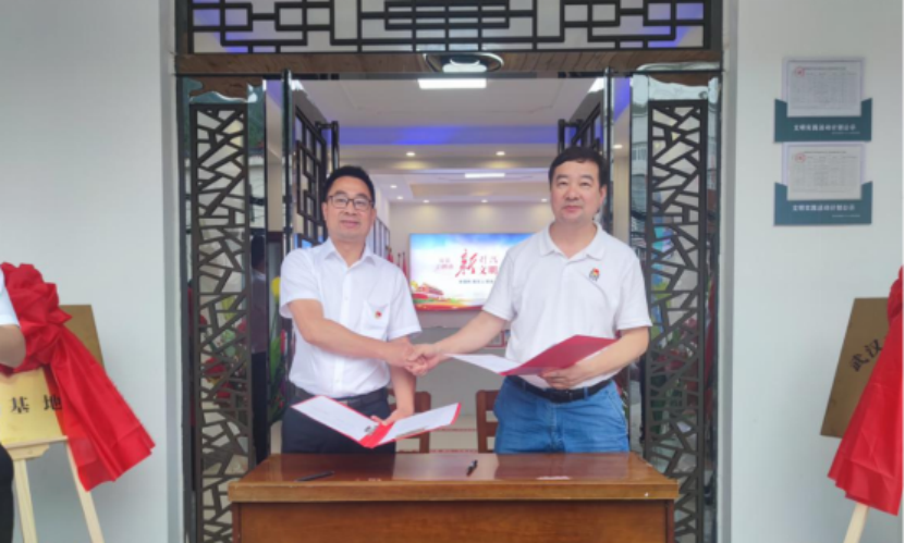 6月29日上午,Beat365亚洲版官网入口实践基地挂牌仪式在房县白鹤镇新时代文明实践所举行。学校党委书记杨知勤、Beat365亚洲版官网入口院长毛传清、校组织部副部长肖玉、驻村工作队,白鹤镇党委书记蔡建宇、党委副书记、镇长唐盛波、党员代表参加了挂牌仪式。
