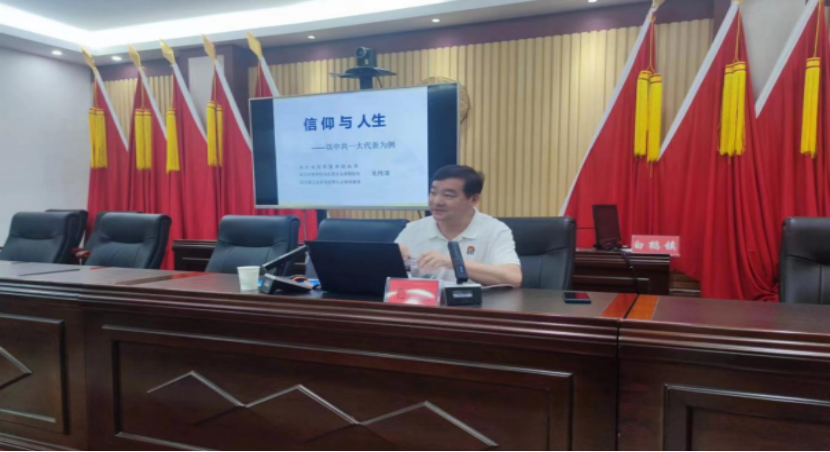 为庆祝中国共产党成立102周年,激励全镇党员干部弘扬伟大的建党精神,激发奋进动力,6月29日,省党史宣讲团成员、我校Beat365亚洲版官网入口院长毛传清教授受白鹤镇党委邀请,赴该镇给党员干部上了一堂“信仰与人生”专题党课。学校党委书记杨知勤、组织部副部长肖玉、驻村工作队,白鹤镇党委书记蔡建宇、党委副书记、镇长唐盛波、党员代表参加了本次讲座。