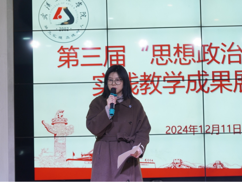 活动伊始,曹卓深入浅出地阐述了实践教学在思政课程中的重要性,强调实践是检验真理的唯一标准,也是提升学生综合素质的有效途径。她说到此次是我院举办的第二届“思想政治理论课”实践教学优秀成果展示会,相比第一届,这次同学们实践教学成果的形式更加多样,除了体验红色文化、开展社会调研,还尝试制作短视频等。曹卓提到思政课立德树人目标的实现,不仅需要学生学习理论知识,还需要他们通过实践去体验、检视和内化理论知识,引导学生将爱国情怀、道德修养、理想信念和中华民族优秀传统文化等内化于心,外化于行,实现知、情、意、行的统一。