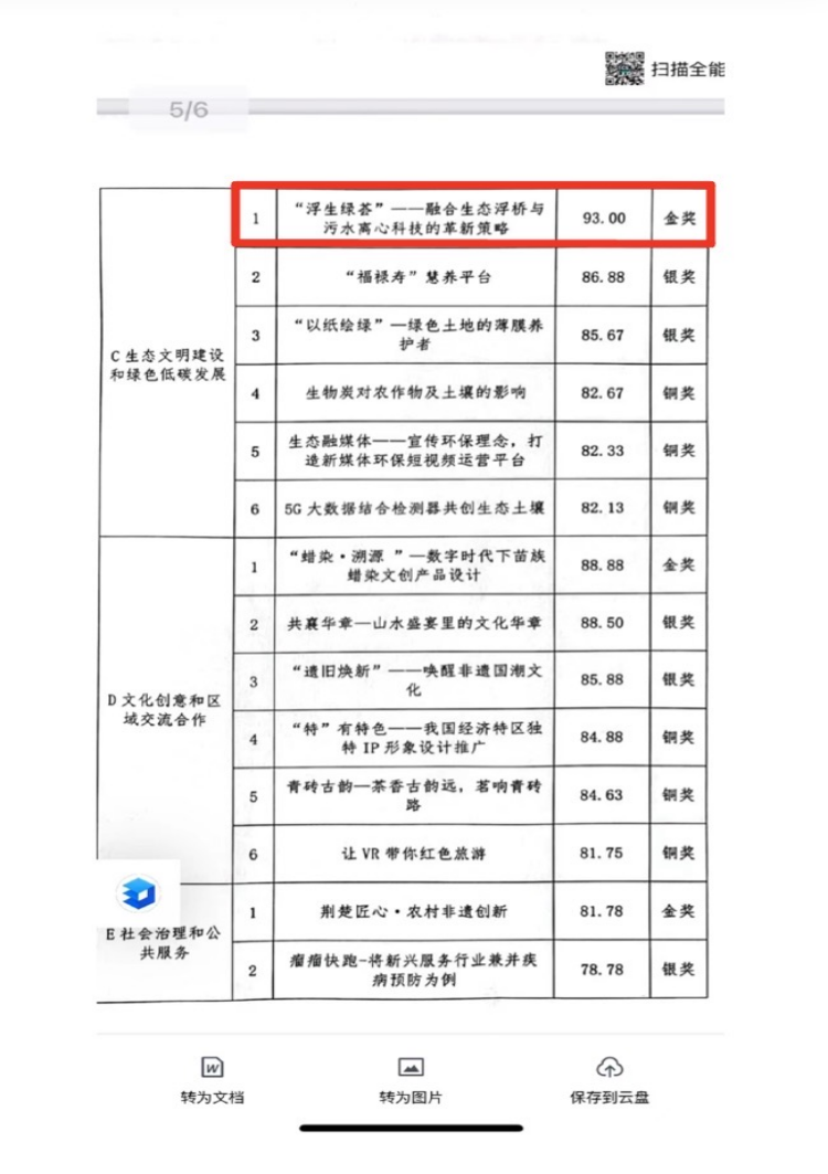 2024 年 5 月 10 日,Beat365亚洲版官网入口 2024“挑战杯”校赛圆满结束。Beat365亚洲版官网入口阚欣、黄晨曲老师指导的参赛项目《“浮生绿绘”——融合生态浮桥与污水离心科技的核心策略》,勇夺 C 组生态文明建设和绿色低碳发展组第一名并获金奖。